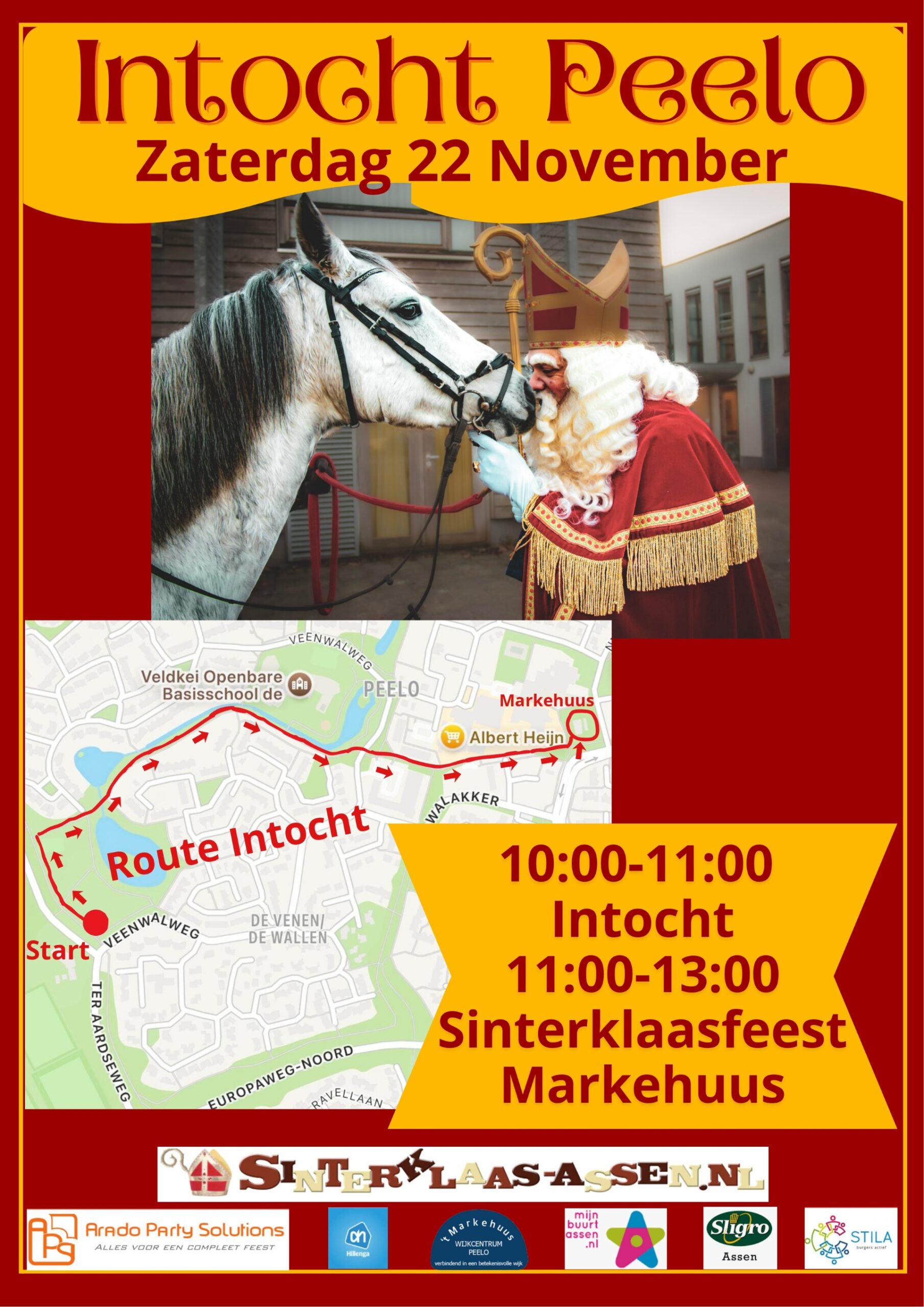 Sinterklaasintocht in Peelo vanaf 10.00 uur en eindigt in het Markehuus.Daarna wordt een gezellige boel in het Markehuus tot 13.00 uur.